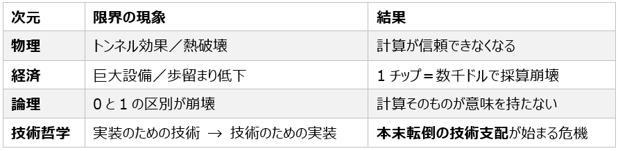 - これ以上の微細化は「性能向上」ではなく「物理的苦痛の上に成立する破滅的効率化」になる