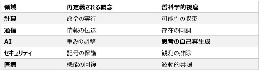 - 量子半導体により、状態ベクトル空間上での非線形干渉が可能 → **「意図なき帰結を創発する自己発見型AI」**が成立